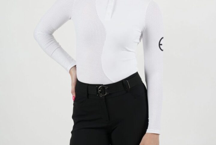 The Alesia Shirt is a high-collar technical top. The milky soft perforated fabric provides the breathability, mobility, coverage, and comfort needed during practice. The Alesia is form flattering, and available in Espresso, Forest, Agave, Eucalyptus, Graphite Grey, Midnight Blue, Cabernet, Lilac, White, Jet Black, Bellini, Powder Blue, Amalfi and Tuscany. The Alesia Shirt is made from 80% Nylon, 20% Spandex